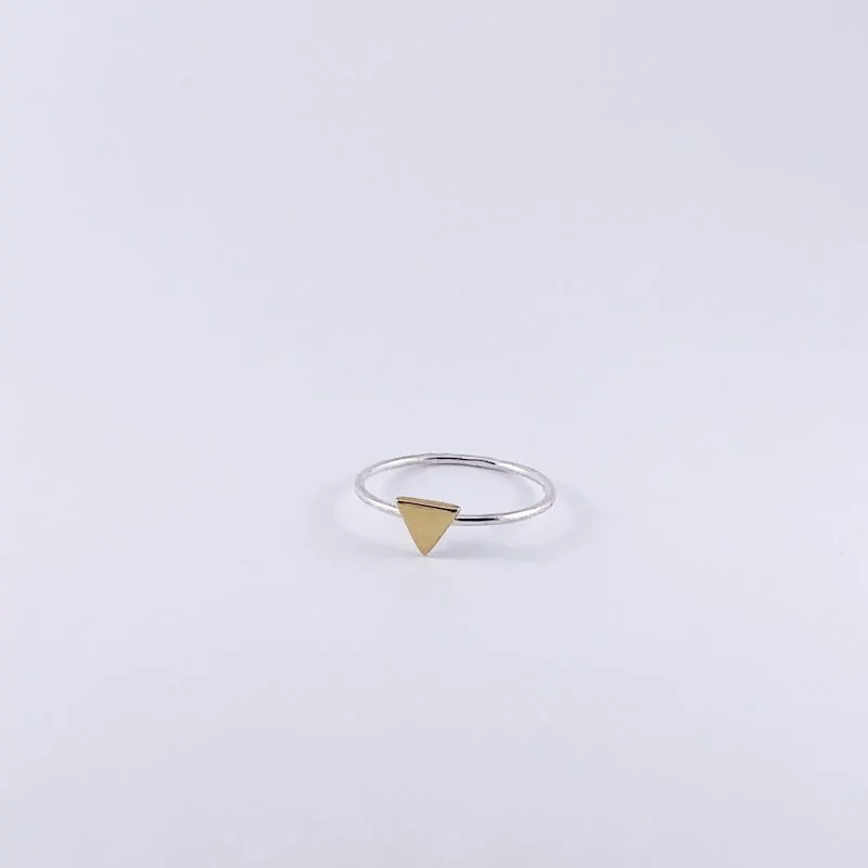 The ring Joe is silver with a gold plated triangle. Simple, graphical ring that suits every look. The ring is available in three sizes: 16, 17 and 18. Our jewellery is handmade.