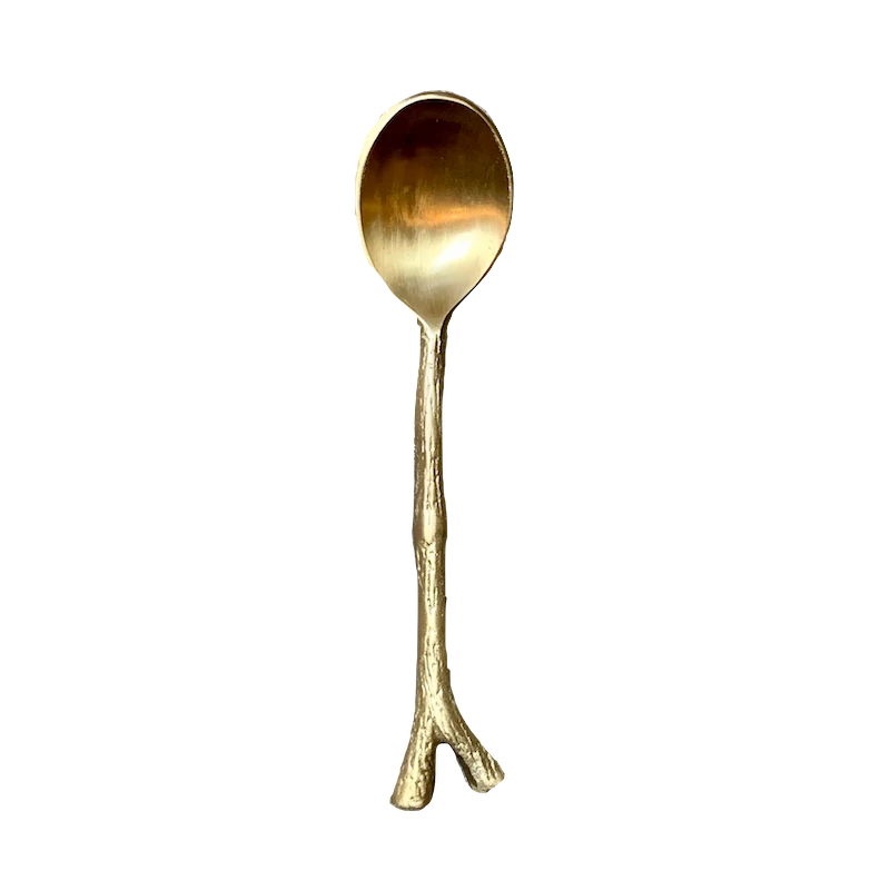 A cute brass spoon. The handle is shaped as a twig. This spoon will look delightful having dinner parties. Great for olives or other tapas. Utensils like brass and copper are noted to hold therapeutic benefits, whether you use them for cooking, or to eat your meals.