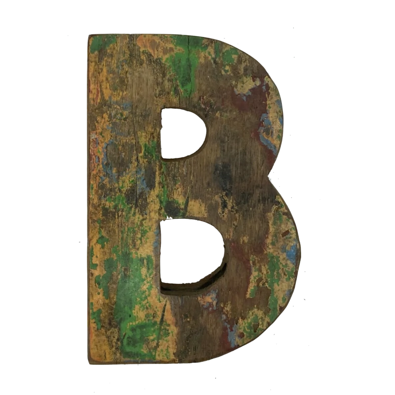 A wooden letter made out of an old, Indonesian fishing boat. The aged wood makes an attractive finish and looks great on a wall. You can play with words and colours; a cool word on your kitchen wall, the name of your newborn, the initials of your kid on their door and so on. The back provides a small hook to hang it on your wall. Pick your favorite out of the three and let us know your preference when ordering.