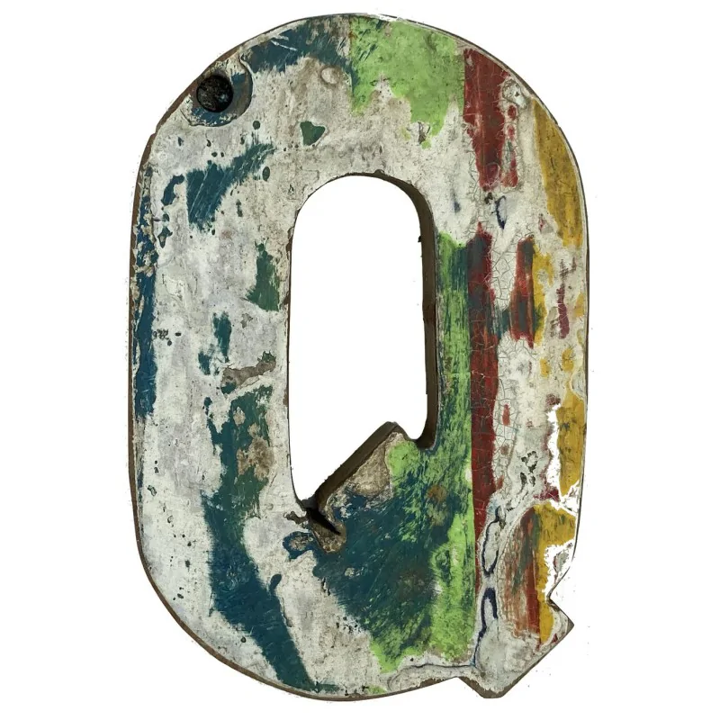 A wooden letter made out of an old, Indonesian fishing boat. The aged wood makes an attractive finish and looks great on a wall. You can play with words and colours; a cool word on your kitchen wall, the name of your newborn, the initials of your kid on their door and so on. The back provides a small hook to hang it on your wall. Pick your favorite out of the three and let us know your preference when ordering.
