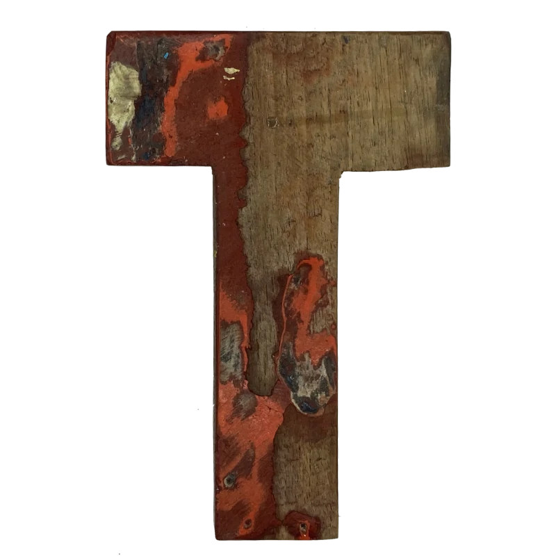 A wooden letter T made out of an old fishing boat. The 'lived' wood makes an attractive finish and looks great on a wall. You can play with words and colours; a cool word on your kitchen wall, the name of your newborn, the initials of your kid on their door and so on. The back provides a small hook to hang it on your wall. Pick your favorit A and let us know your preference when ordering.