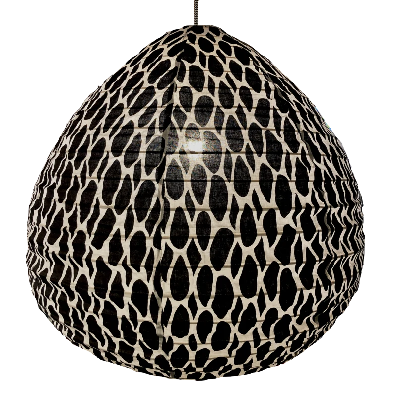 The lampshade Leo black is a graphic lampshade. The gorgeous pattern printed on strong cotton. The lampshade is completely foldable and makes it easy for shipment. We also sell the solid colored lamp shades Liv, that are made from linen.
