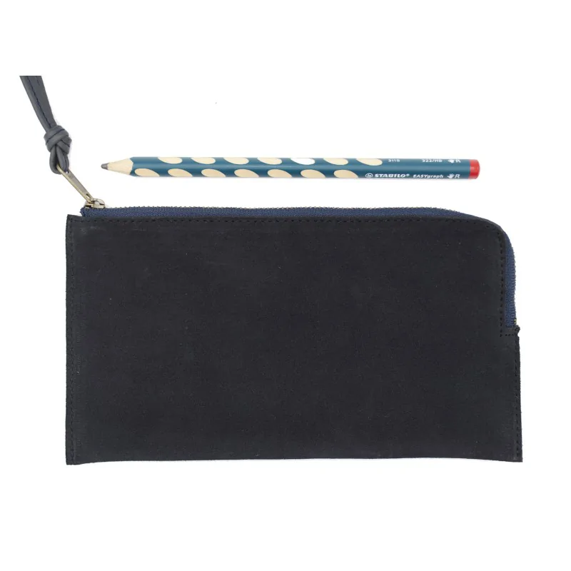 This GMZ suede wallet/pouch Dean M is perfect with its one compartment to store whatever; traveling papers, receipts, id-card, make-up, iPhone up to 12 and Samsung Galaxy, pens and pencils etc. This pouch combines well with the small leather pouch Dean XS , that allows you to keep things separate and organized. The sturdy look makes this wallet very populair with men. Also available in suede; contact store.