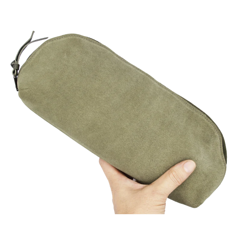 De GMZ suède make-uptas Rai large is ideaal om al je make-up netjes en compact met je mee te dragen.De Rai is zo ontworpen dat als je de rits open doet, hij open valt zonder dat je spullen eruit vallen door de opstaande randen. Dus mooi en functioneel!  Als deze te groot is hebben we ook een kleinere variant in het leer of suède (zie accessoires).