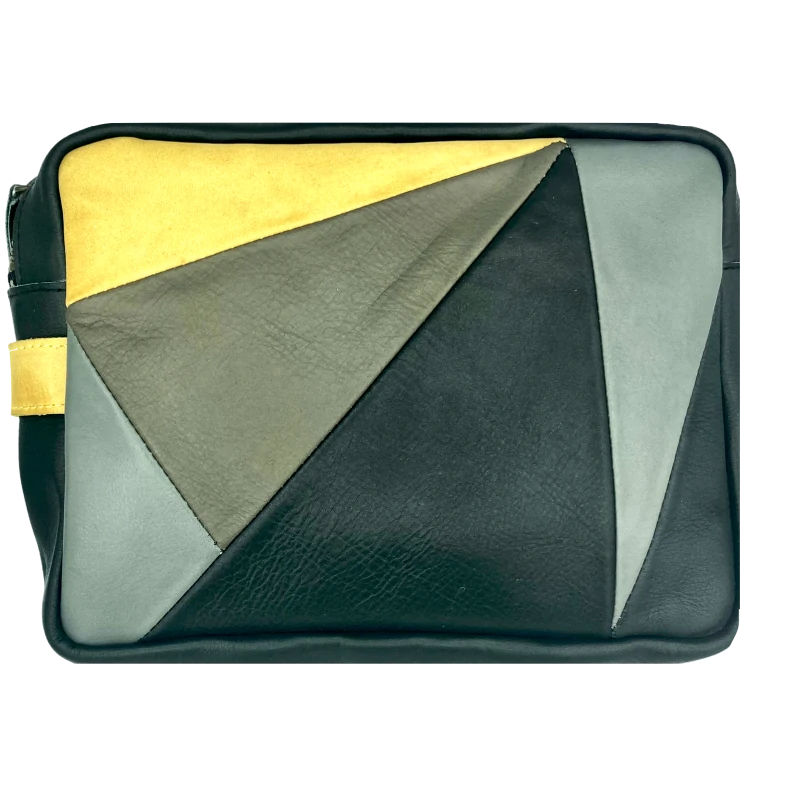 Geschikt voor van alles: als techbag voor al je kabels, chargers etc, maar ook voor make-up, pennen en allerlei. Daarnaast een prachtige accessoire om met je mee te dragen. Het patchwork ontwerp gemaakt van onze left -overs van vorige gm z producties geeft het een unieke 'look'.