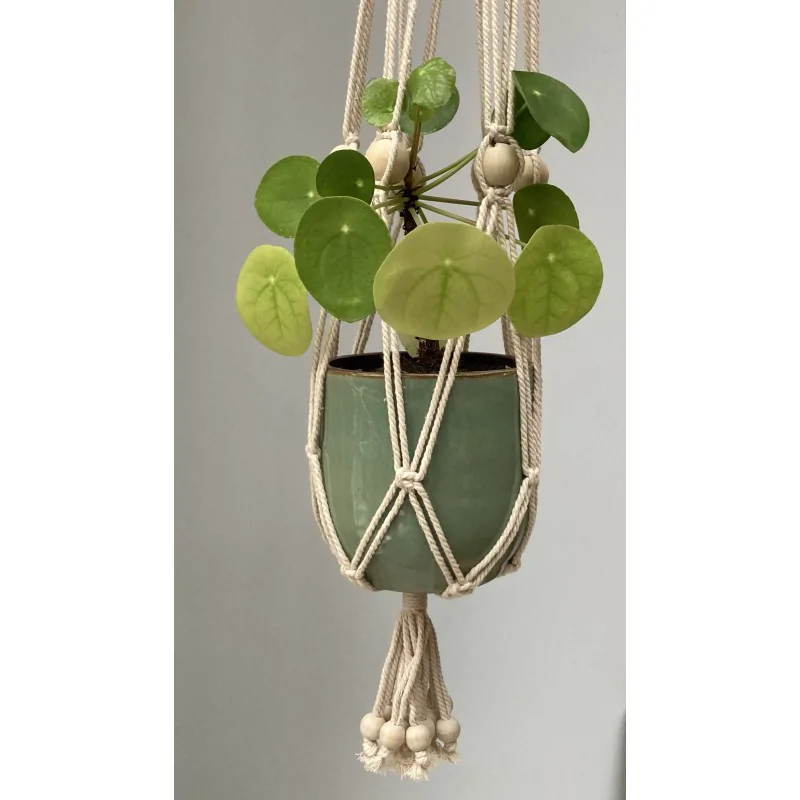 Deze prachtige, handgemaakte hangers zijn echt een aanwinst voor onze woonruimtes. De hanger kan gebruikt worden voor je plantjes, maar ook voor een grote schaal om je make-up, post of andere 'rommeltjes' mooi op te bergen. Het macramé past zich aan, aan de maat pot die je erin doet (niet te zwaar).