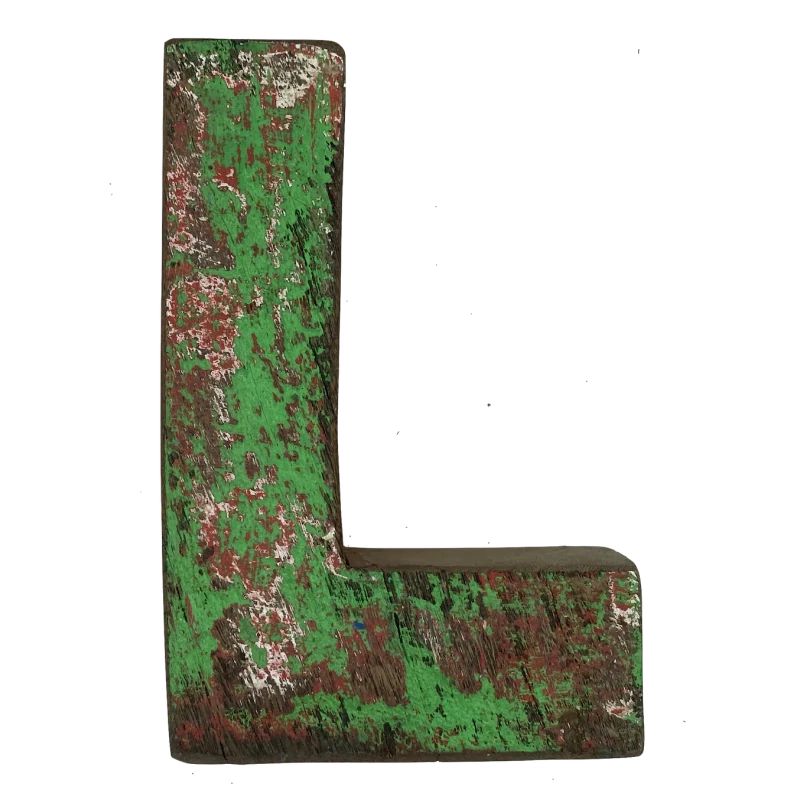 De houten letter L is gemaakt van een oude vissersboot. De rustieke 'look' is speels en prachtig op een muur. Je kunt spelen met woorden en kleuren; een mooi woord in je keuken, de naam van je nieuwe baby, het initiaal van je kind op zijn deur en nog andere creatieve mogelijkheden.
