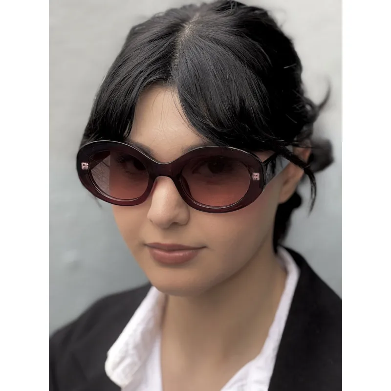 De zonnebril Peggy heeft een warme roodbruine frame met donkere glazen. Een klassieke 'Jackie Kennedy' bril in een moderne versie. Daarnaast biedt deze bril een UV 400 bescherming voor de ogen.
