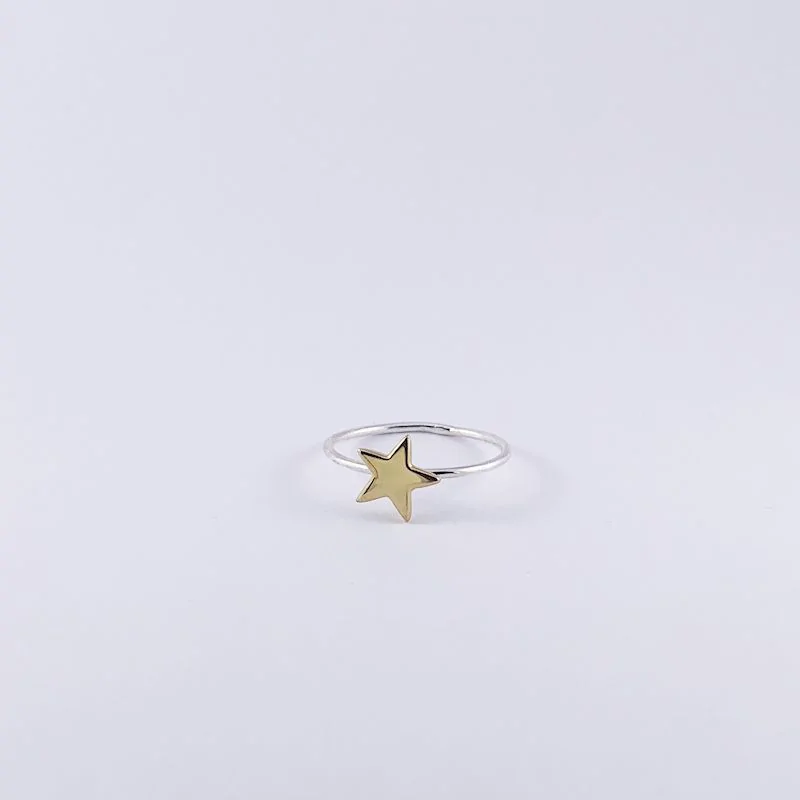 De ring Joe is zilver met een goudverguld sterretje. Een simpele grafische ring die past bij elke look. De ring is beshikbaar in drie maten: 16, 17 en 18. Onze sieraden zijn handgemaakt.